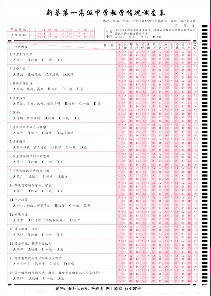 學(xué)生問(wèn)卷評(píng)教卡
