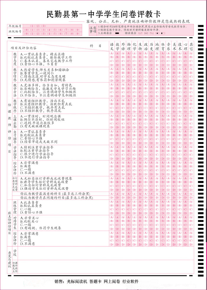 產(chǎn)品標(biāo)題:學(xué)生問卷評教卡