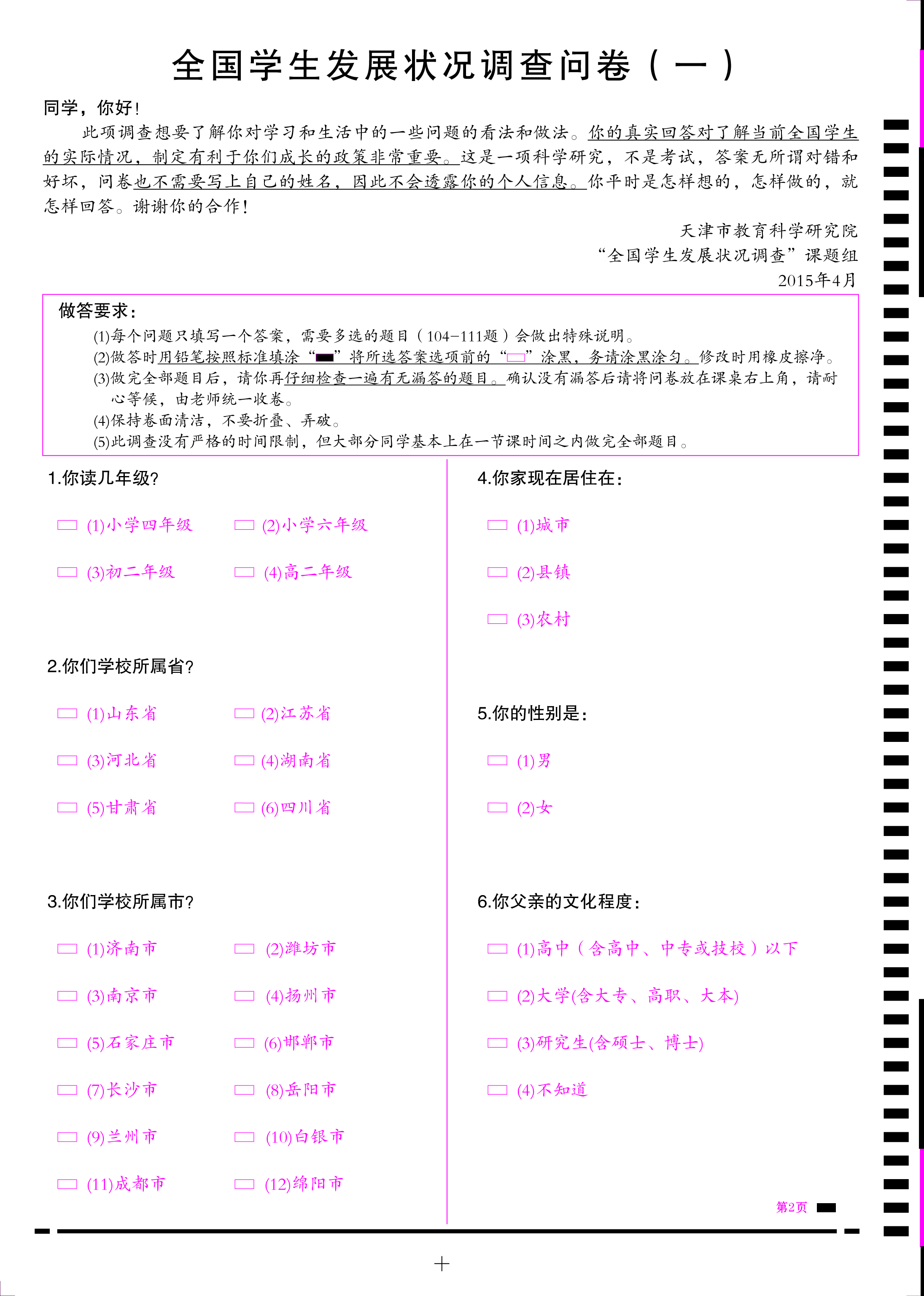 產(chǎn)品標(biāo)題:全國學(xué)生發(fā)展?fàn)顩r調(diào)查問卷
