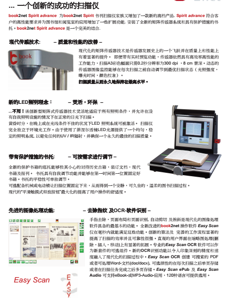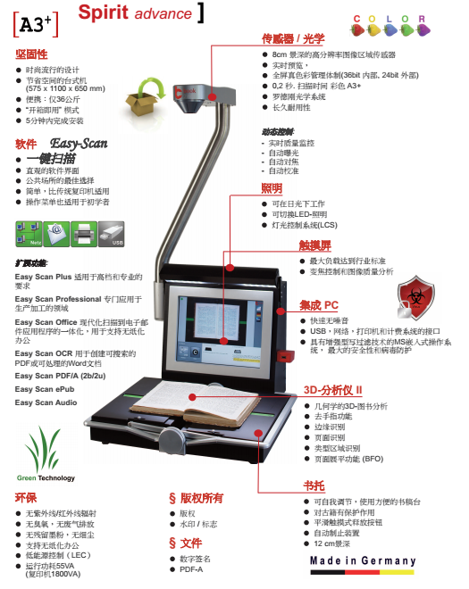 *1、為保證書刊案卷掃描的高速、耐用和使用便利的要求,要求矩陣式CCD點(diǎn)對(duì)點(diǎn)一次性彩色掃描方式。要求彩色掃描一次性完成,掃描過程鏡頭、光源不移動(dòng)、不閃爍。并且要求具備實(shí)體證物彩色立體采集功能,要求實(shí)體證物采集景深高度≥15cm。操作過程中可任意更多種語言選擇。